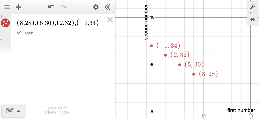 At this moment, my time was cut short by the cry of a baby who was supposed to be asleep for another 7 hours. So, as I rocked her back to sleep in the dark, I fired up Desmos on my phone. Game on.